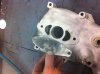 I got some stuff done today, got the flexplate in today, thanks to a generous member. I cleaned the front cover, with a 3m roloc wizz wheel. put the new water pump together and bolted it to the plate, with lock washers and a new gasket. I then painted it white, why you may ask? if there are any leaks "it's a diesel, it's gonna leak" I can easily tell where it's coming from. more on this later. I also cut a piece of plate aluminum and created an egr block-off plate from it so, all I need at this point is gaskets and the pump, and I'm set. once cleaned, the engine gets a nice no gloss white paintjob, for forementioned reasons. when rebuilding the water pump, I used the nuts from the fan studs to remove them, just tighten the nuts against each other then back the one closest to the pump almost off until it can be removed by hand, then do the others using two 1/2 or 13mm wrenches to do this you will be done in no time, and your studs can be re-used. My pump came with everything but new studs, even has mounting for a larger fan. I also performed the clutch fan mod, I just need some silicon to finish.