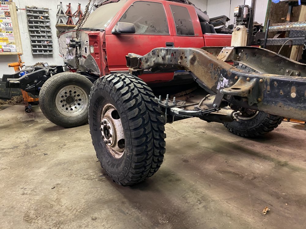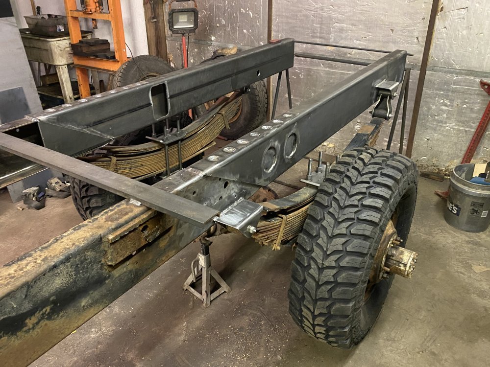 Thank you for the feedback. The axle will be straddling that joint, though I don't have the exact location of the hangers yet. I did the angle in that direction because at the leading edge of the bottom of that extension is where the original frame rail kicks up (you can just barely see it in that picture if you look closely), and the height of the rail at that kick up was a perfect slip-fit for the inside dimensions of the 3x8x1/4, so I was taking advantage of that feature, but still trying to add as much weld seam length as possible, so that's why I went in that direction. Thinking back to my Statics class......are you thinking that if the axle was completely behind that splice that it would be better for the load to be largely compressing the weld seam rather than having it in tension?The fact that you angle cut the splice is wise. For what it's worth, due to the axle location (assuming it's behind your splice, if doing this again, I would have the angle this direction, though (indicated with red).