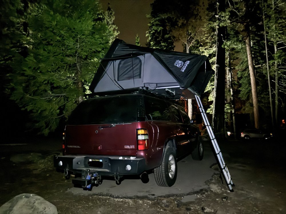 I'm pretty impressed with the rack and the tent. I've driven it with an empty rack and there's zero noise at all even up to 80mph. Added the tent and still nothing. It's super quiet. The whole truck seems quieter after I changed the body mounts and rear leaf springs. but you really can't tell it's up there. The tent is 165# and the rack is probably 60#. And you can't tell any difference with over 200# on the roof. I'm very pleased and excited to get it out and put it to work. We have 7, possibly 8 camping trips lined up this year so hopefully this keeps the wife happy.