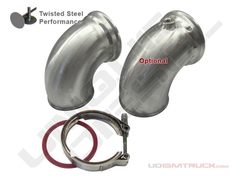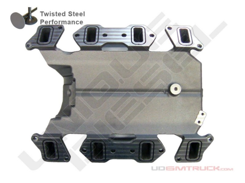 We are pleased to finally be able to offer our all new intake system. You will see in the pics this is a new cast lower manifold with a optional water to air charge cooler mounted inside. The upper plenum is fabricated from 3/16" 6061 Aluminum with a 1/2" thick base plate, and provides 3 bungs in the rear. The Aluminum elbow is adjustable through a SS v-band connection and has a option for a 1/8npt fitting for WMI etc.