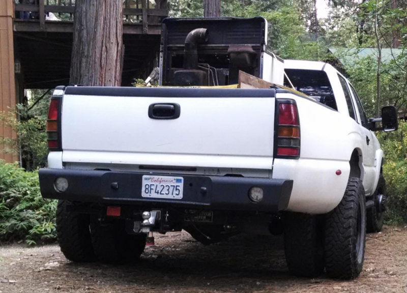 I have the rear bumper off my dually. Its not a Dually specific bumper so should fit any 2500-3500 from 2001-2007 classic. Its powdercoated black and has a few cheap ebay LED lights mounted in the light holes for now.