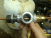 The trick here is the 1/4" compression to 1/2" NP adapter on the top the standpipe is going through is modified by drilling out the lip inside it that normally prevents lines from going through. On the end you put whatever adapter you need. In this case a 1/4" flare, since I am going to recycle some old A/C test hoses to connect to the engines oil galley. To add the oil you loosen the 1/4" to 1/2" adapter and pull the stand pipe out. Stick in a funnel and fill it up.