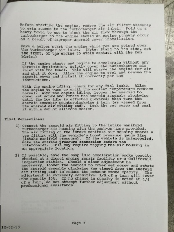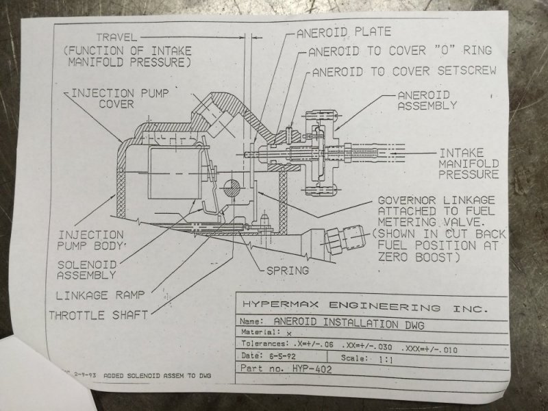 An aneroid limits the low RPM fueling until boost comes up. Once you develop enough boost to open the aneroid, then it will allow for full fueling. It's a smoke limiting device is all so you don't put so much fuel to it to black out the road behind you before the boost comes up.Maybe I missed something in a earlier post so don't get offended by my question please....