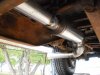I got the exhaust finished. I'm very surprised at how much quieter it is, compared to the old 3" with a Flowmaster, and turndown. Its got a decent bark when I step down on the loud pedal, but its very mellow in the cab when cruising. My welder won't stretch out to my lift, so my plan was to mock things up, and take them back in the shop to weld, but this proved to be a real pain in the rear, so I welded up what I could in the shop, and pulled out the torch, steel rod, and acetylene welded the rest while on the lift. This type of weld never turns out as nice as a Mig, but it will hold. I also had to use a piece of flex pipe to keep the exhaust from getting to close to things. Luckily I had some laying around from a previous project on a bus. Overall I'm happy, and it seems like the boost comes on quicker as well. Here are some pics.
